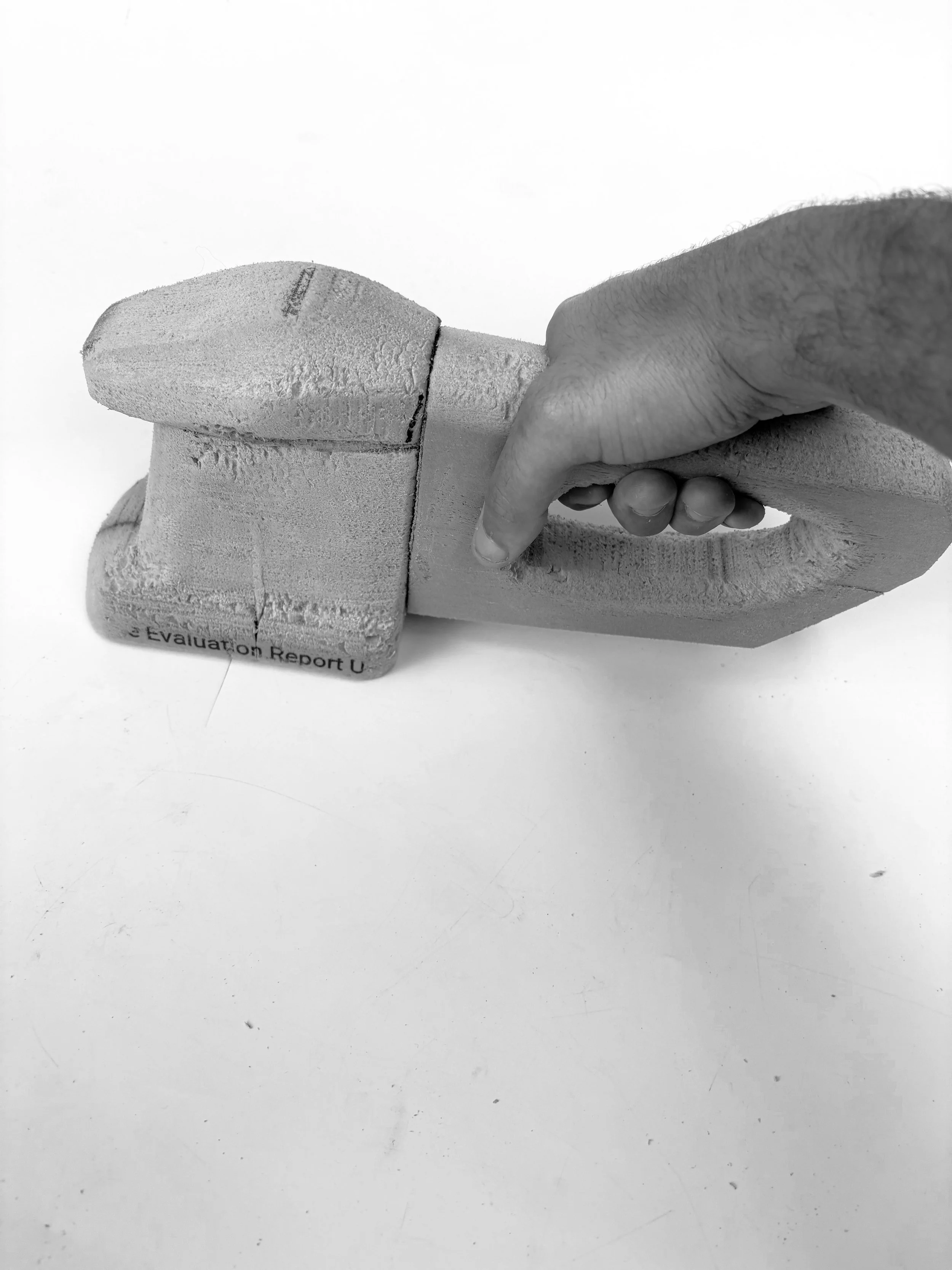 Building foam models of the rear handle helped me explore form, fit, and hand positioning while also testing trigger placement, allowing for quick adjustments to improve overall comfort and control.