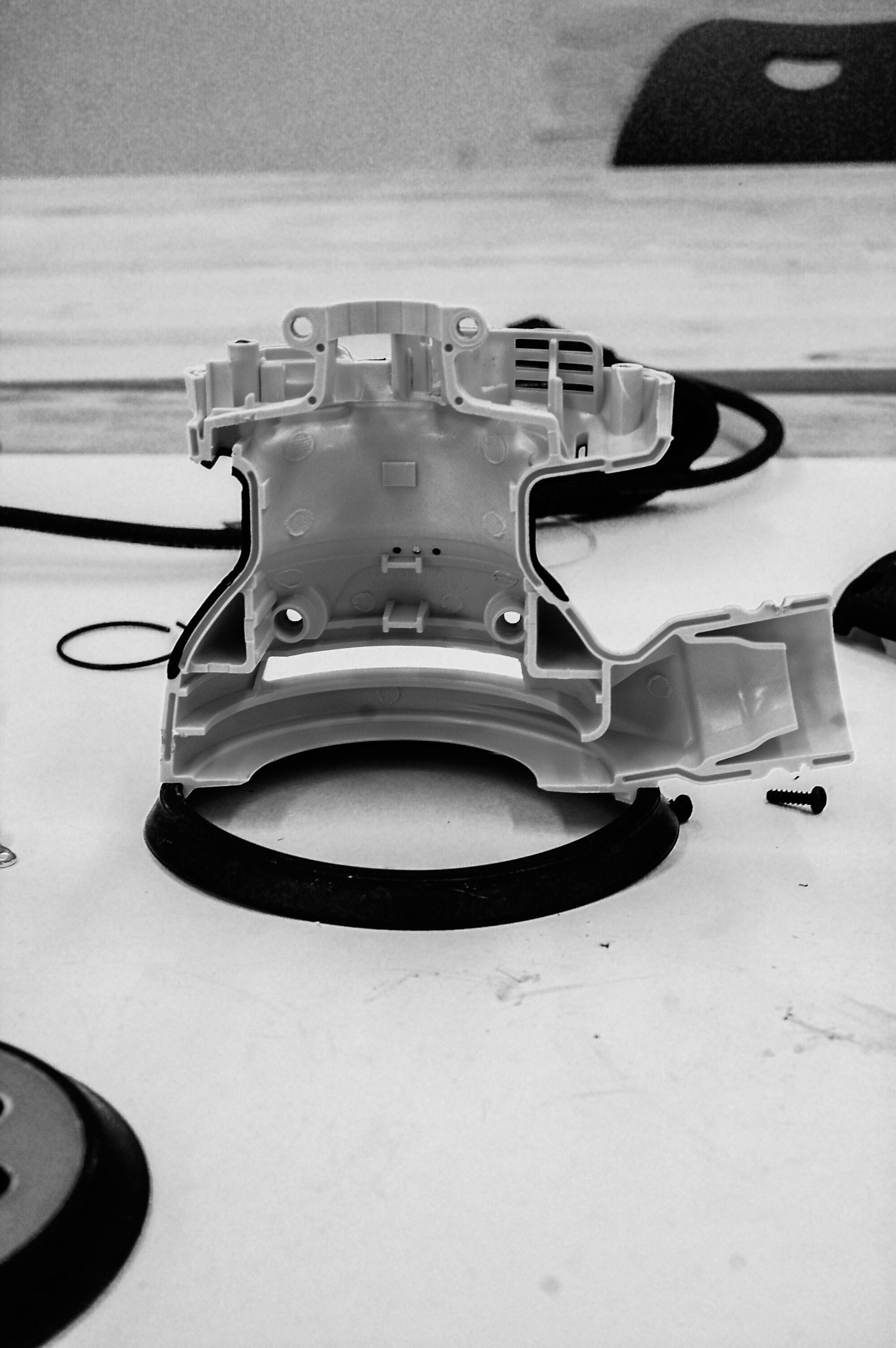 Taking apart an orbital sander helps inform the design process by revealing how its internal components function and fit together, offering valuable insight into ergonomics, construction, and opportunities for innovation.