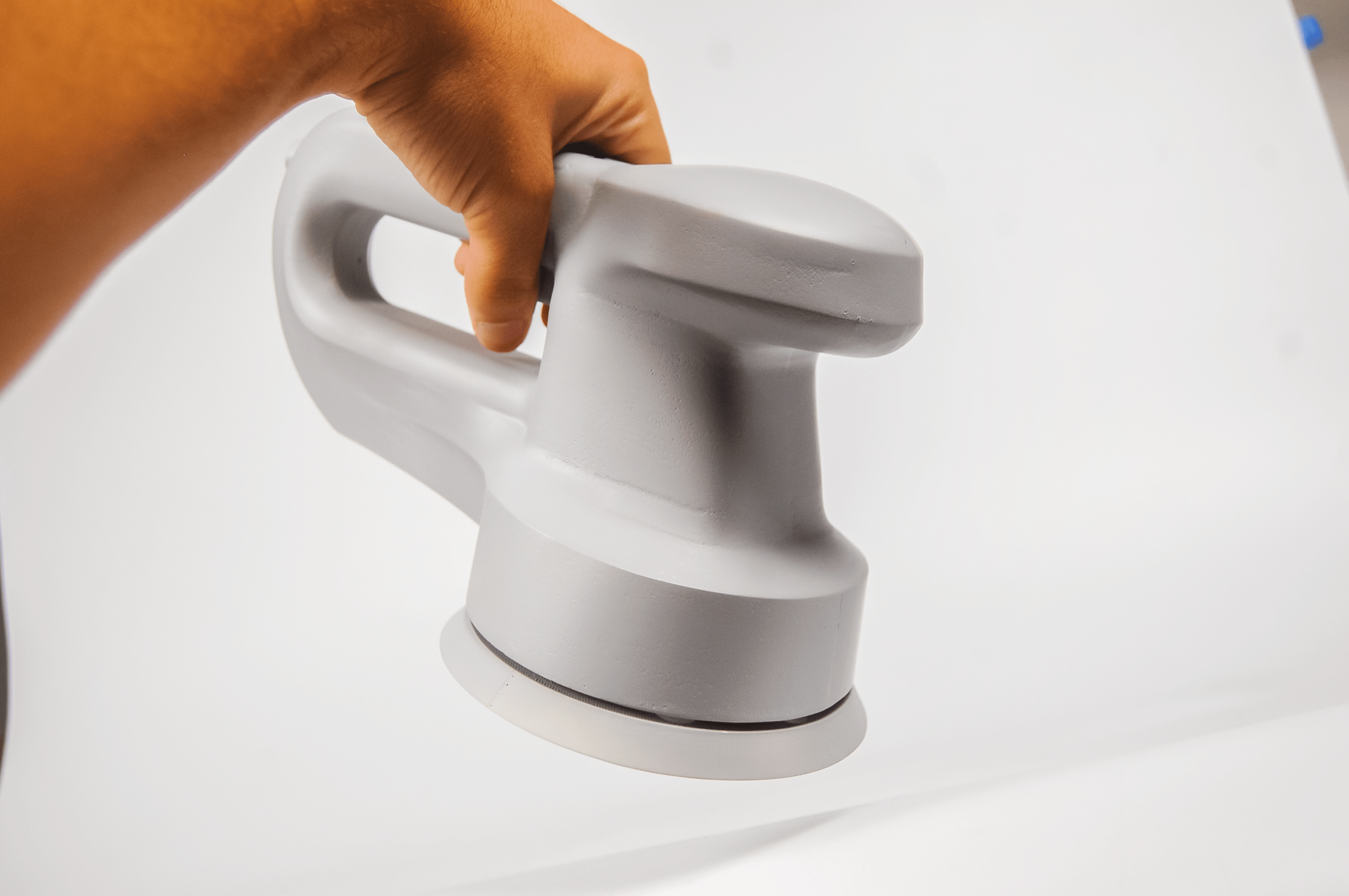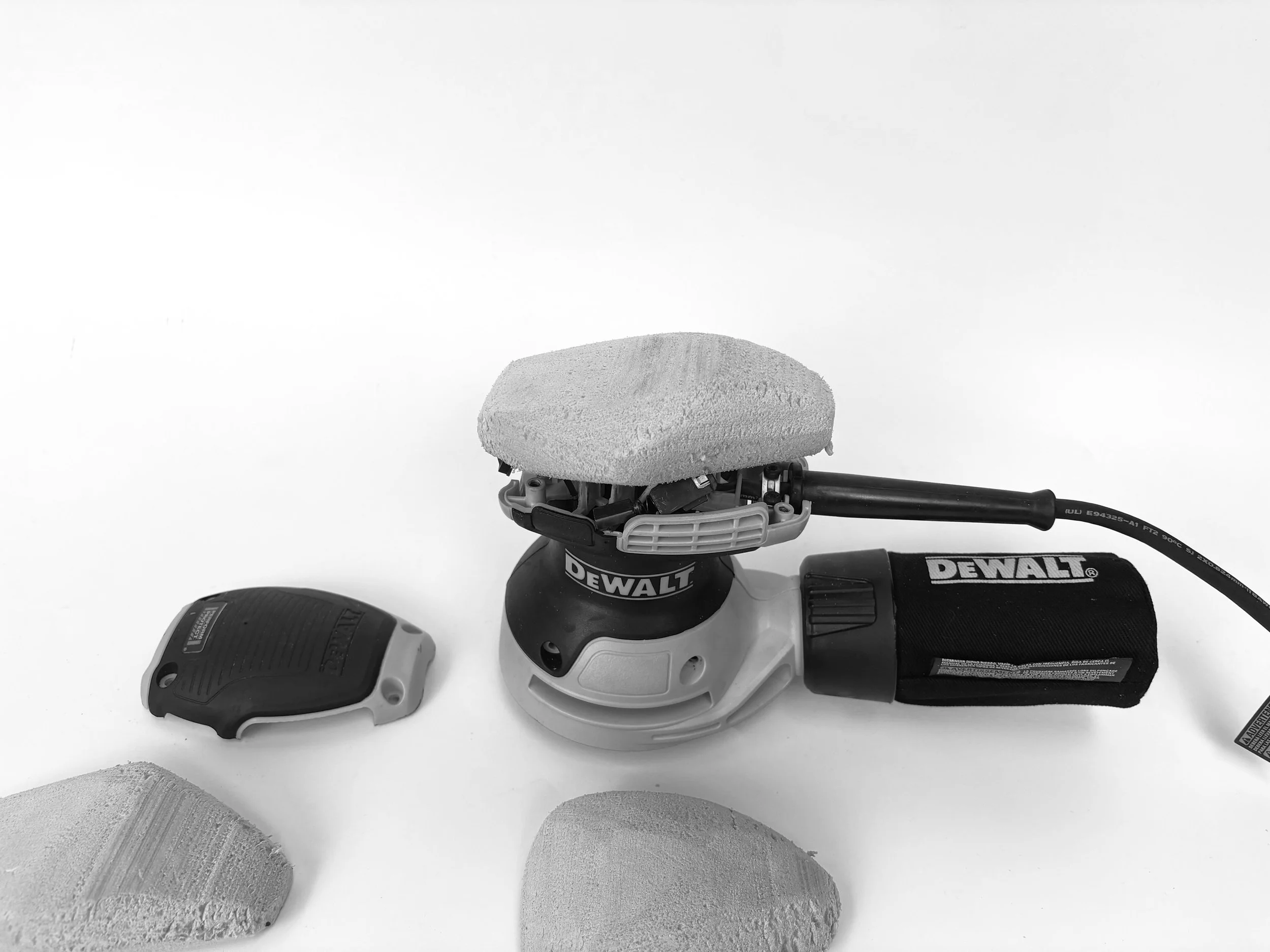 Creating foam models of palm grips allows for quick, hands-on testing of ergonomics, helping refine the comfort, shape, and usability of the orbital sander early in the design process.