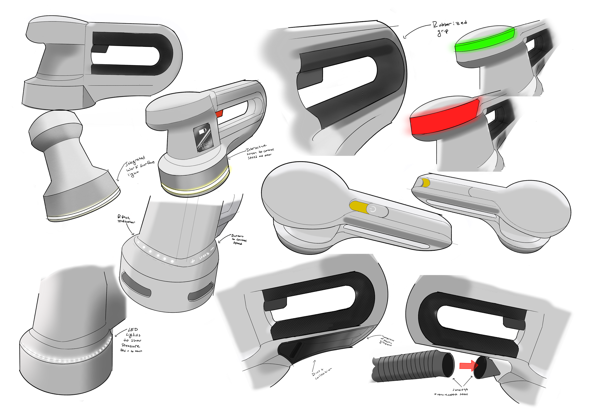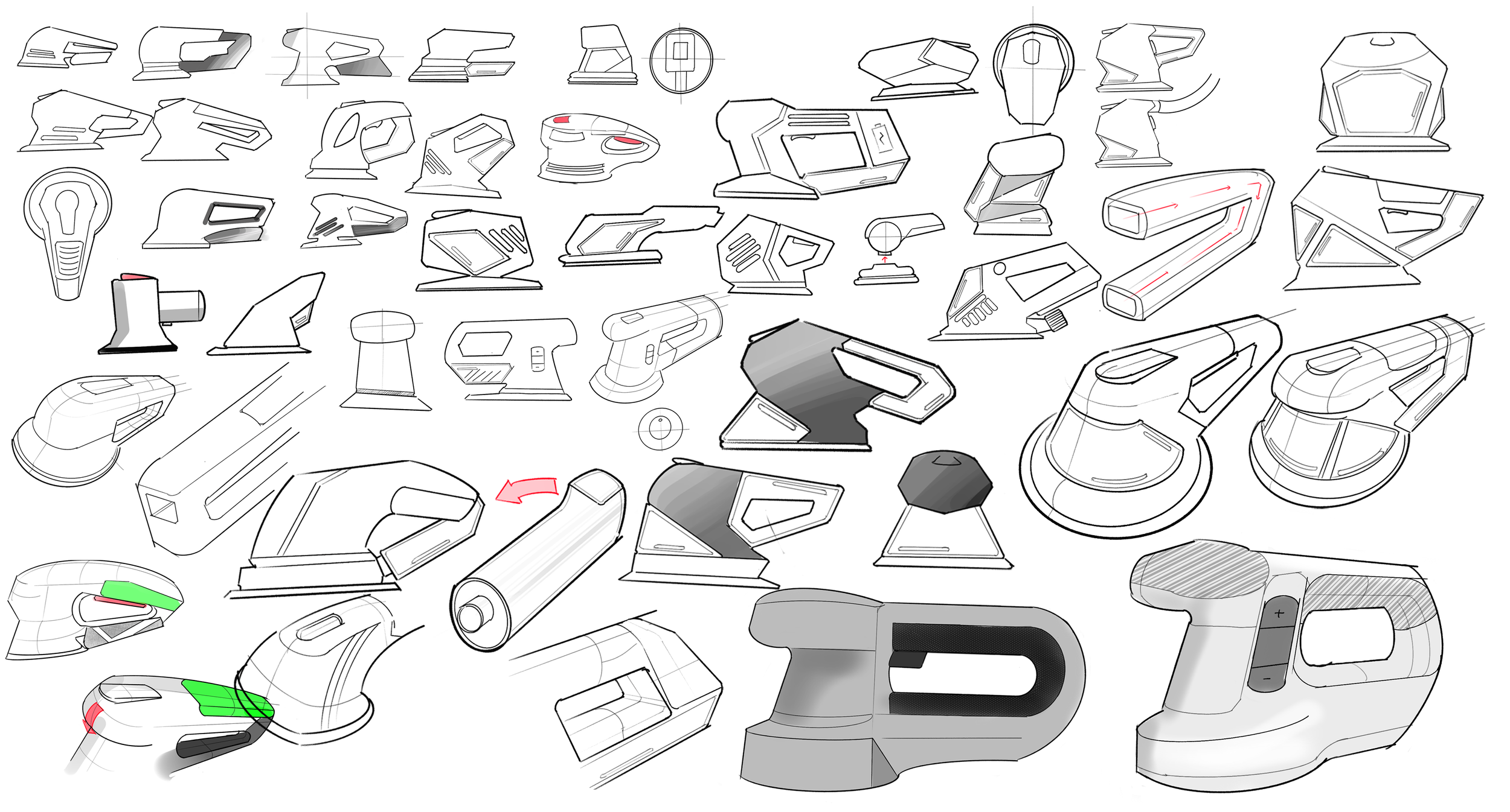 3D-modeled and replicated the internal components of the orbital sander for the tool tear down. Accurately rebuilding the existing sanding mechanism allowed me to design around a proven, fully functional system—following a “form follows function” approach.