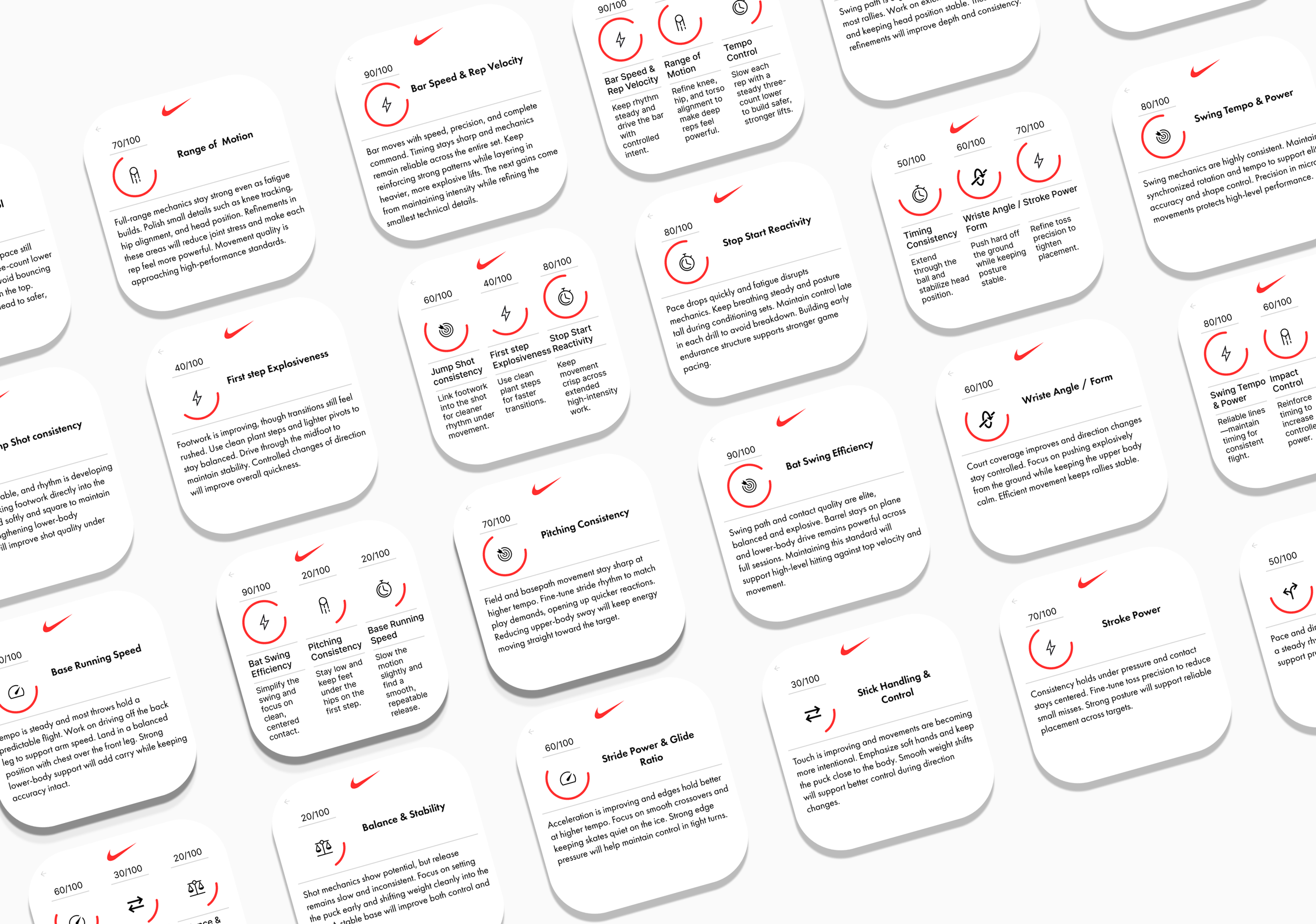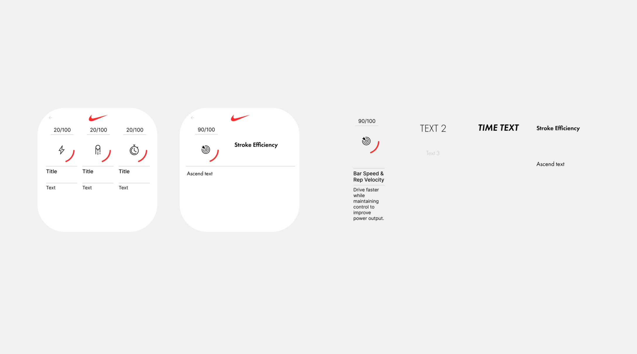 The design exploration revolves around creating a system that feels simple, intentional, and efficient. Each interaction is stripped down to its essentials: a single tap to start, straightforward metrics, and brief performance summaries that remain out of the way until needed. The aim is to provide meaningful insights through an interface that supports the athlete instead of distracting them.